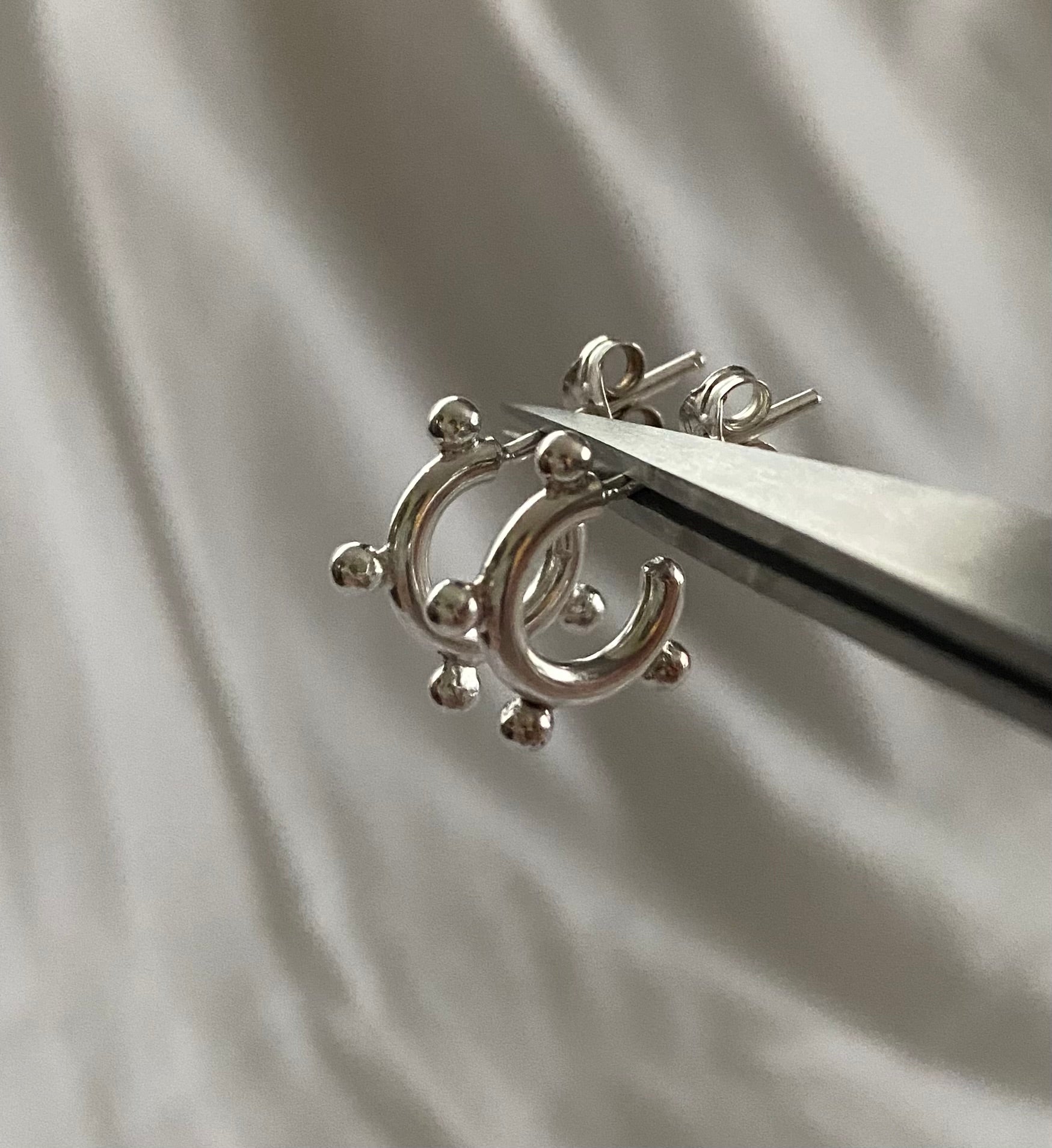 Petite sterling silver hoops with subtle dotted detailing, a fresh twist on a classic style. Effortless, easy to layer, and made for daily shine.